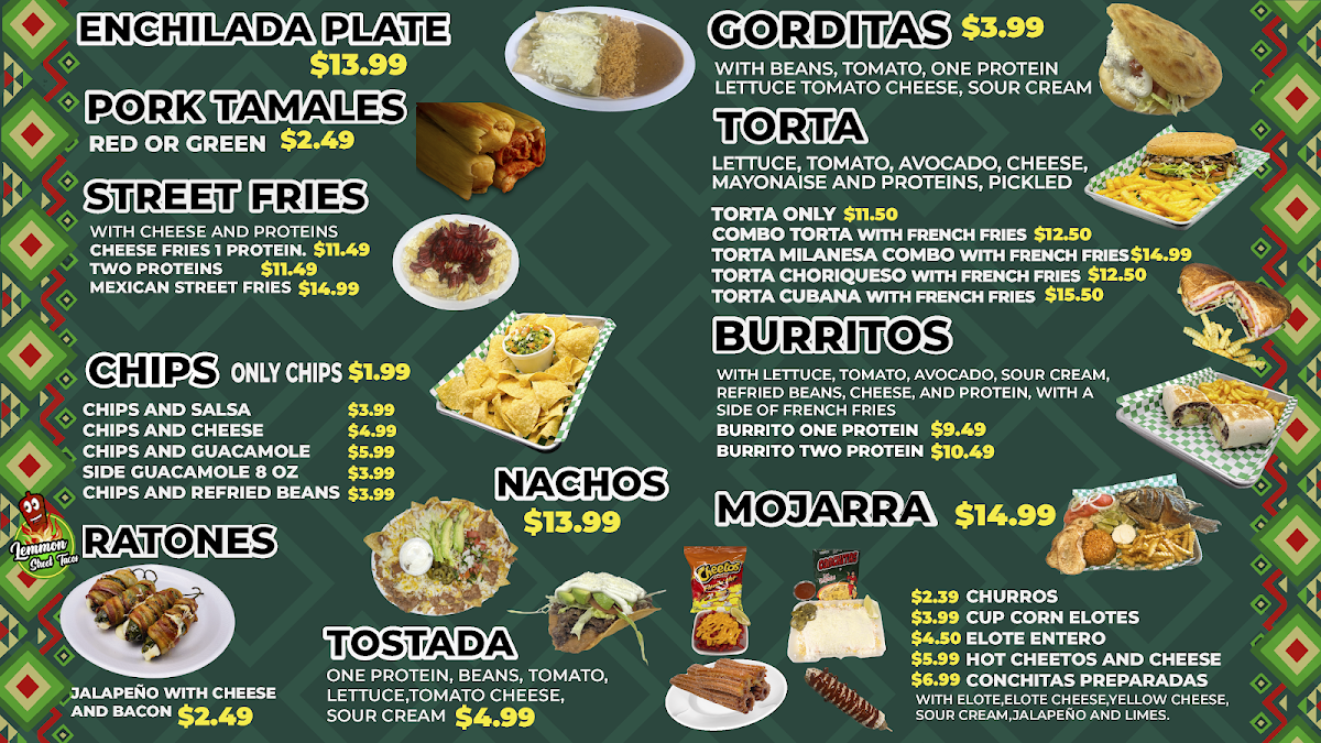 Introducing the menu at Lemmon Street Tacos Taqueria, where culinary delights await in a cozy setting at 4422 Lemmon Ave B, Dallas. This taqueria has captured the hearts of locals with its mouthwatering offerings. The star of the menu is undoubtedly their birria tacos, celebrated for their tender beef and cheesy goodness—echoed in a perfect 10/10 review from Reuben De Almeida.